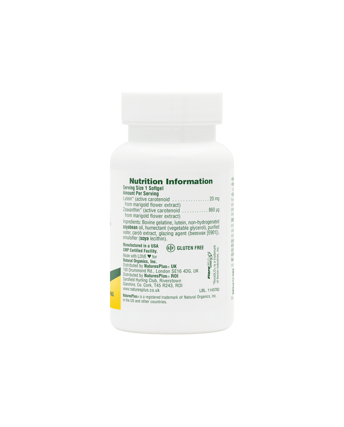 - GUARANTEED PURITY: NaturesPlus Ultra Lutein is free from artificial colours and preservatives. It is also gluten free. All NaturesPlus products are crafted with only safe, high-quality natural ingredients.