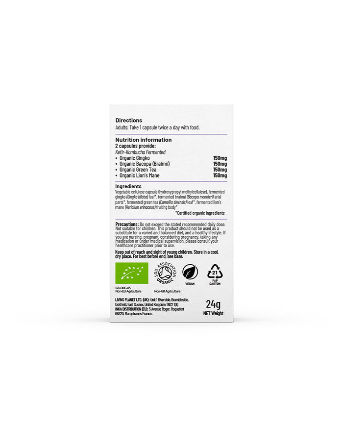 Several studies have substantiated bacopa’s nootropic utility in humans. Studies have shown the benefits of bacopa in improving speed of processing visual information, learning rate, attention, and memory. Gingko has been found to improve recall and memory and was linked to improvements in multiple cognitive performance measures. Lion’s mane helps to optimise neurogenesis; the creation and growth of new brain cells, making it an ideal nootropic for supporting focus and productivity.