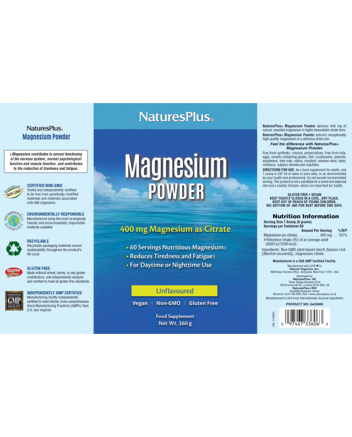 Magnesium is often referred to as “The Missing Mineral” as studies have found that a large percentage of the population are deficient in this essential nutrient. However, it plays a crucial role in over 300 enzymatic reactions in the body, therefore supplementation may be required. NaturesPlus KalmAssure Magnesium Powder deliver 420mg of natural, essential magnesium in highly bioavailable citrate form. Suitable for daytime or night-time use.