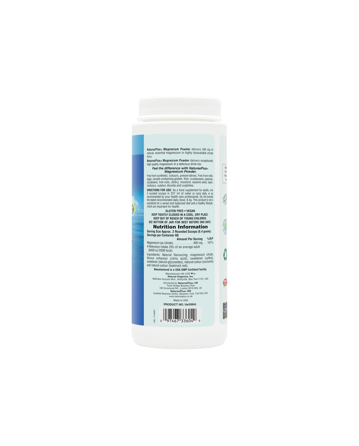 Magnesium is often referred to as “The Missing Mineral” as studies have found that a large percentage of the population are deficient in this essential nutrient. However, it plays a crucial role in over 300 enzymatic reactions in the body, therefore supplementation may be required. NaturesPlus KalmAssure Magnesium Powder deliver 420mg of natural, essential magnesium in highly bioavailable citrate form. Suitable for daytime or night-time use.
