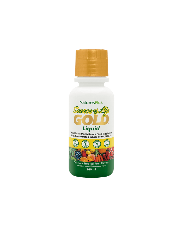 Source of Life Gold is the most comprehensive and advanced whole food multivitamin supplement available. Revolutionary, all-natural ingredients with a unique blend of superfoods, energy enhancing*These statements have not been evaluated by the Food and Drug Administration. This product is not intended to diagnose, treat, cure or prevent any disease. and immune supporting nutrients†. With more than 110 colourful fruits and vegetables, NaturesPlus pioneered the addition of synergistic organic whole food phytonutrients to vitamin and mineral supplements. With an irresistibly delicious tropical fruit flavour, Source of Life Gold Liquid delivers the innovative features, high quality and guaranteed potency of the Source of Life Gold line of supplements. The result is peak nutrition, increased energy*These statements have not been evaluated by the Food and Drug Administration. This product is not intended to diagnose, treat, cure or prevent any disease. and life-enhancing benefits.