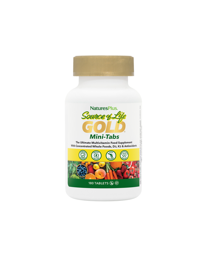 Source of Life Gold is the most comprehensive and advanced whole food multivitamin supplement available. Revolutionary, all-natural ingredients with a unique blend of superfoods, energy enhancing*These statements have not been evaluated by the Food and Drug Administration. This product is not intended to diagnose, treat, cure or prevent any disease. and immune supporting nutrients†. With more than 110 colourful fruits and vegetables, NaturesPlus pioneered the addition of synergistic whole food phytonutrients to vitamin and mineral supplements. Source of Life GOLD utilises OptiMicron Technology, which packs up to 10 times the nutrient concentration into each tablet, mini-tab or capsule while still dissolving rapidly for optimal absorption. The result is peak nutrition, increased energy*These statements have not been evaluated by the Food and Drug Administration. This product is not intended to diagnose, treat, cure or prevent any disease. and life-enhancing benefits we all look for.